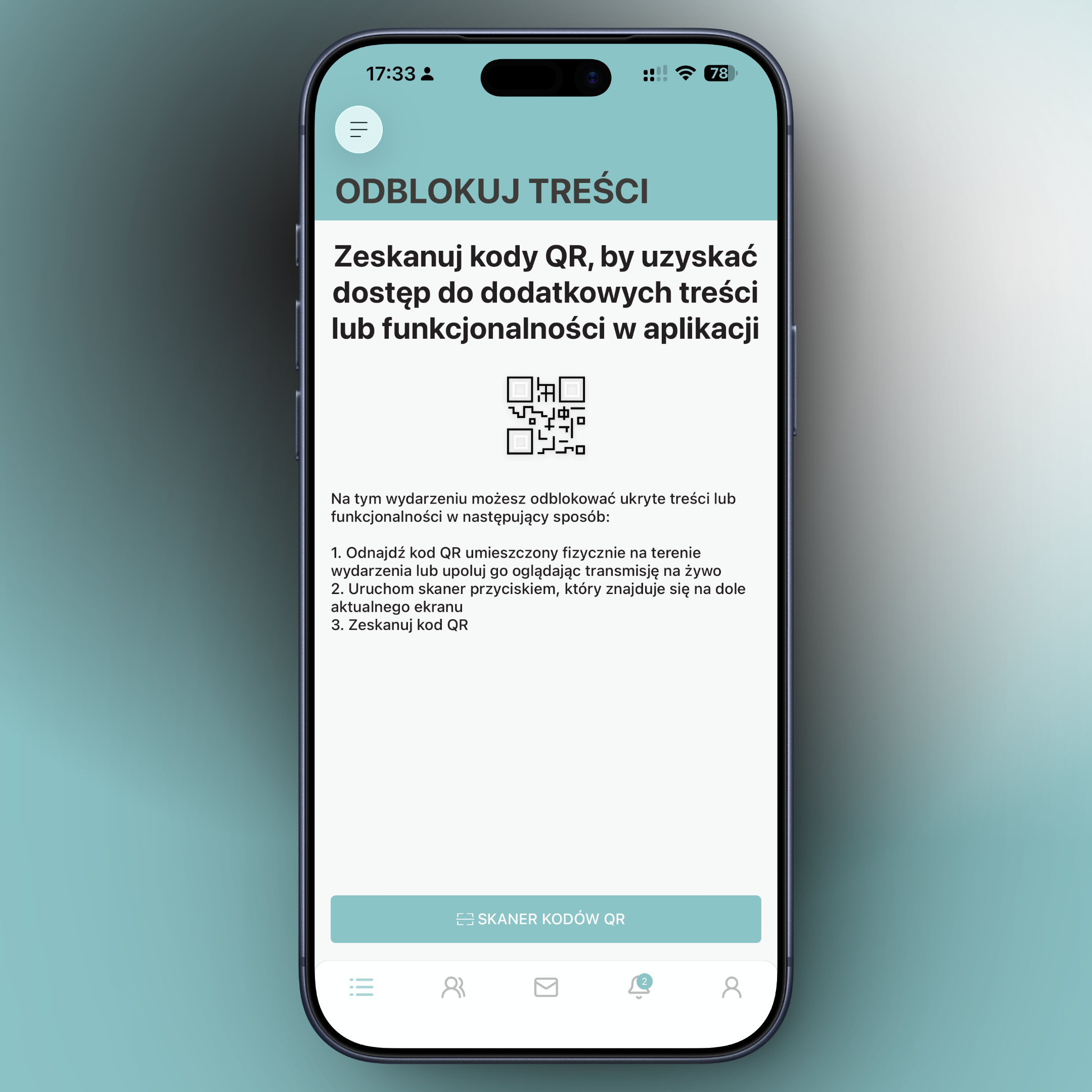 Dostęp do Twojego wydarzenia uzyskując skanując kod QR w panelu